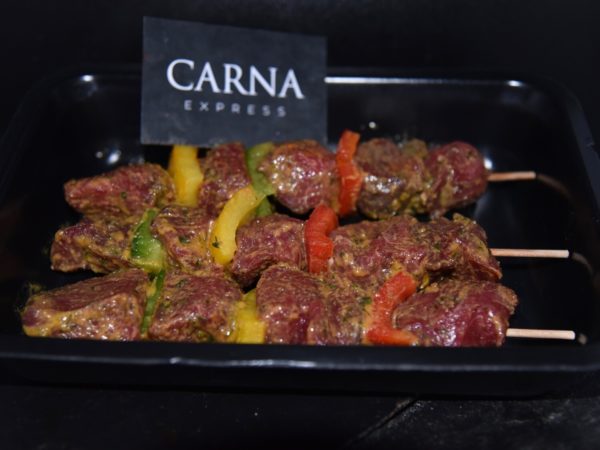 Brochette de cheval marinée à l’ail + poivrons